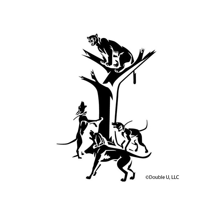 Double U Hunting Supply decals are a perfect way for houndsmen and women to visually showcase their love for the great outdoors and hound hunting. Artwork is custom designed by Double U Hunting Supply with the decals being made from quality die cut vinyl, featuring a graphic of a cougar being treed by three hound dogs.