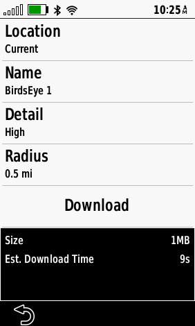 - Birdseye Direct: Directly download Birdseye mapping to your device without a computer. Just connect the Alpha 200 to a WIFI network and you can download mapping.