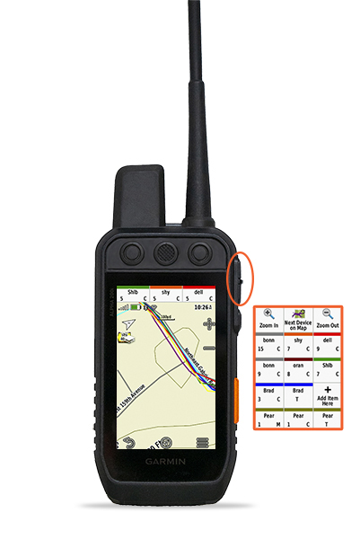 In addition, the top three āTrainingā buttons, are now fully programable to make other commands besides only Training/Stim commands. A few examples are to program the buttons so that on certain pages, those buttons can do other features. A favorite option we have found is to utilize, a Zoom in, Zoom Out, and Next dog on Map. By programming these buttons this way, you have the ability to easily zoom in and out of the map, and also cycle through showing exactly where each different dog is on the map. In the past the only way to do this would be through using the touch screen. With the Alpha 200, it can be configured so that almost all tracking and training activities can be done without using any of the touch screen. Of course, the touch screen options are all still there. We really appreciate these features while using gloves or when the screen is wet from rain. Itās at these times that using the touch screen can be frustrating. However, the button functions have proven to be a āgame changerā for these conditions. āIt is another one my favorite features with the Alpha 200ā -Buddyw.