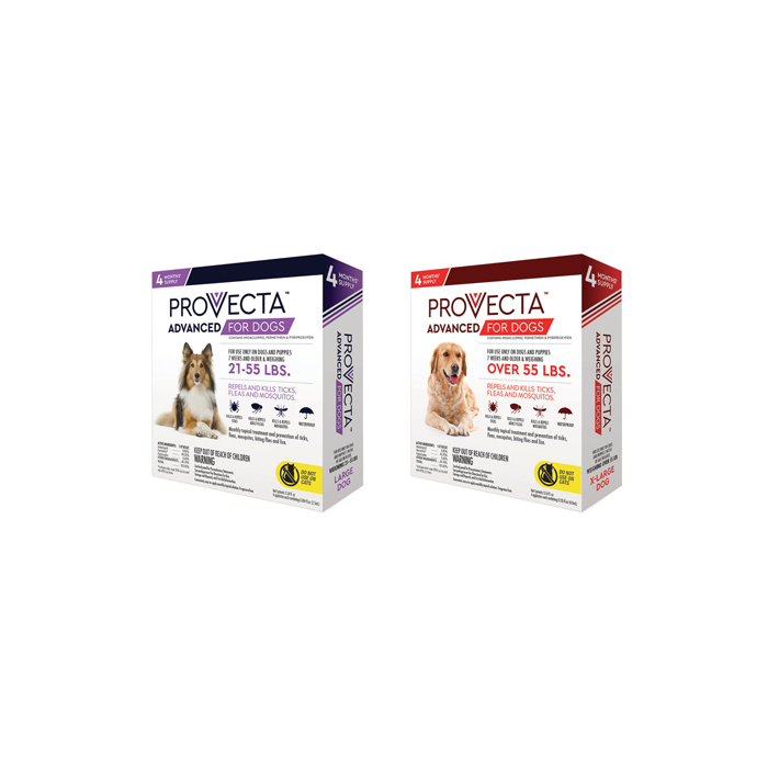 Once-a-month topical prevention and treatment for dogs 7 weeks of age or older. Helps provide disease protection from blood-thirsty ticks that are harmful to pets and a concern for humans. Repels and kills ticks for up to 4 weeks, including deer ticks, American dog ticks, brown dog ticks and lone star ticks. Repels and kills fleas of all life stages. Fleas do not have to bite to die. Repels mosquitoes before they take a blood meal. For any mosquitoes that do feed, Provecta kills them before they have a chance to lay eggs. Also repels biting flies and kills chewing lice.