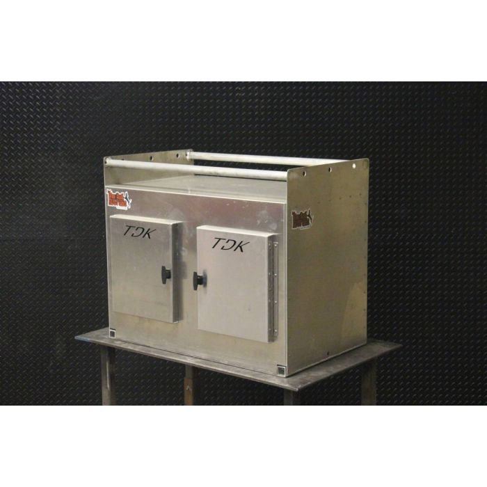 The TDK Alpine Box, is constructed of .100 Aluminum, struct riveted and TIG Welded together, has cargo rack built in for strapping down your gear. The box is set up to pin on to the Snow Kit.